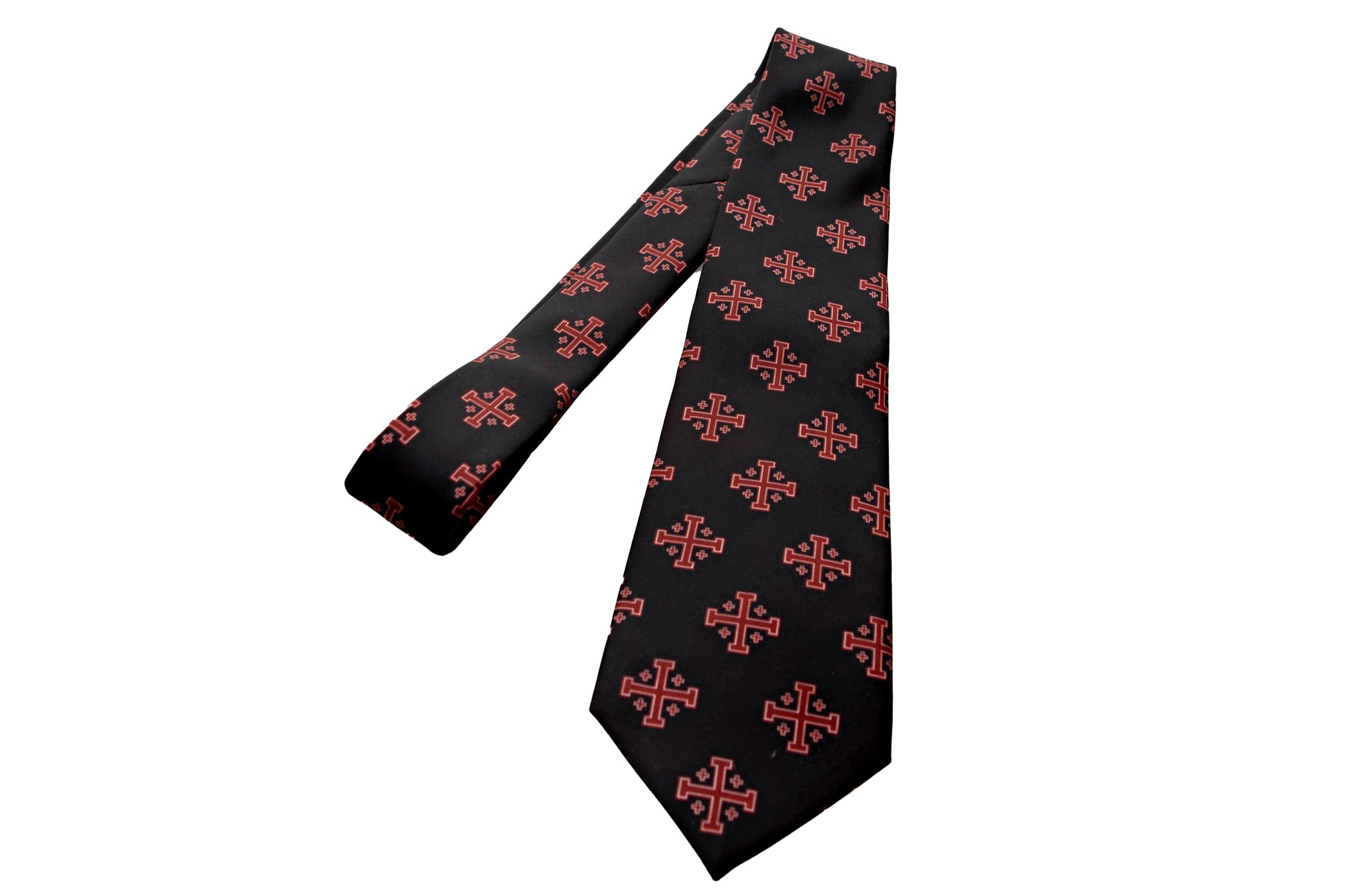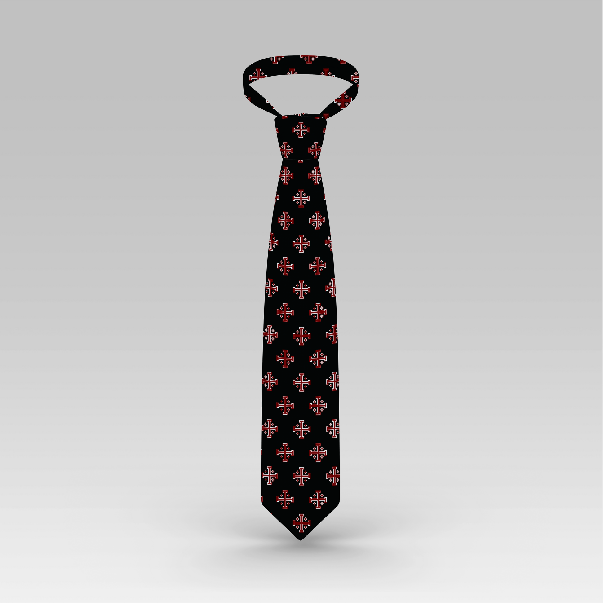 This tie features the Jerusalem Cross, a powerful symbol of the crusader spirit, capturing the zeal and fervor of the medieval Crusades. The central cross, surrounded by four smaller crosses, is traditionally seen as a symbol of Christ and the four Gospels. It also became a prominent symbol of the Latin Kingdom of Jerusalem, established by the crusaders, representing their presence and authority in the Holy Land. Wearing this tie connects one to the bold legacy of the crusaders, invoking a spirit of courage, duty, and an unyielding dedication to a cause greater than oneself. This design not only celebrates the historical significance of the crusaders but also their commitment to their faith and their enduring impact on Christian history.